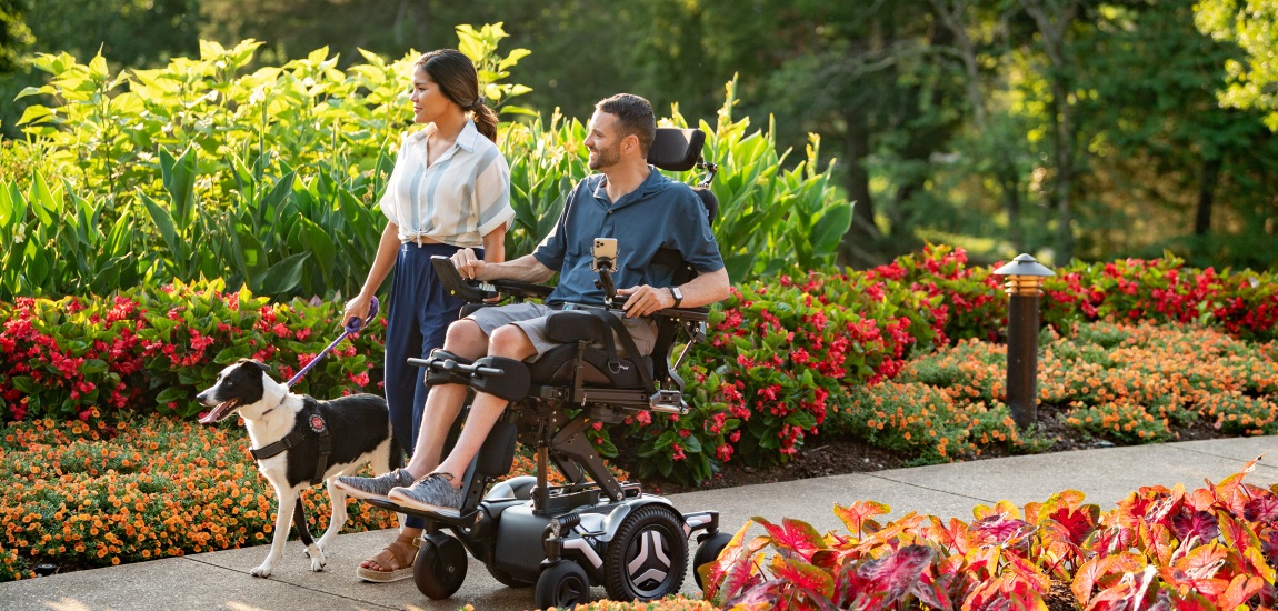 Safety first, so keep your hands on the wheel and your eyes on the road. Install storage and holders, and you won’t be tempted to drive down the boardwalk with a double latte in one hand. You can get pockets and pouches that hang down the back of your chair or hand under the seat, cup holders to stay hydrated, and brackets to carry your walker, cane, or crutches. You can even install an IV pole.