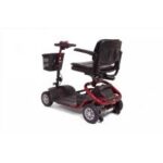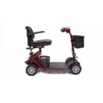 The four-wheel LiteRider scooter from Golden features better range, a Delta Tiller standard, more attractive styling and more vibrant colors. A modern tubular frame design supports its 300 lb. weight capacity, and its completely wireless disassembly makes transporting a breeze. The LiteRider GL141’s 9-inch, black low-profile tires are mounted on high-strength steel rims with shiny hubcaps. Its plush, deep-black vinyl stadium style seat comes with adjustable armrests and a full 360-degree swivel mechanism for getting on and off the scooter easily. You will also appreciate our two storage baskets, one on the tiller and one under the seat. A true beauty, the LiteRider scooter is available in deep shades of red and blue.