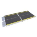 Patented design, lightweight materials, and superior strength combine for one of the most versatile access ramps available. The ramp can be separated into two pieces for easy carrying with no extra pieces to be lost or misplaced; each piece folds in half to be carried like a suitcase.