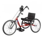 If you want a great way to exercise, cross-train or just have fun, one of the Invacare® Top End® Excelerator™ Series Handcycles is just what you need. This upright and extremely maneuverable three-wheel handcycle is capable of speeds up to 15 mph. The smooth seven-speed Shimano® hub with its reversing drum brake delivers hands-on braking and allows the rider to tackle hills or level terrain with equal ease. The oval tube carbon steel frame construction with adjustable sliding seat makes transfers in and out easier too. The Excelerator Handcycle is built to your specifications, plus you can order the popular mountain drive option which adds 7 extra low gears for climbing hills or the V crankset option with its wider cranks to allow more clearance for those who are tall or require additional space. No excuses…Get Cranking!