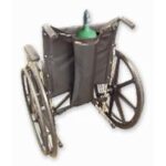 The Wheelchair Oxygen Carrier features adjustable, heavy snaps which allow easy conversion for holding either “D” or “E” cylinders.